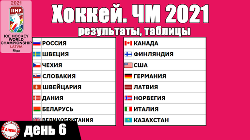 ЧМ по хоккею 2021. Итоги 6 дня. Таблицы, результаты, расписание.