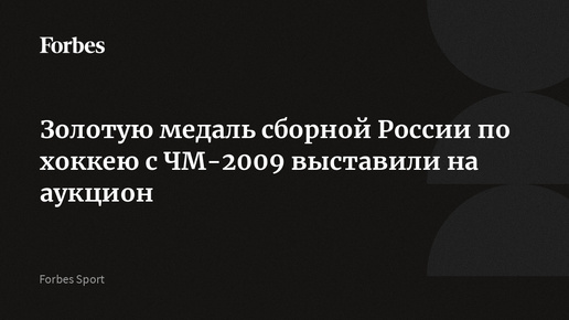 Золотую медаль сборной России по хоккею с ЧМ-2009 выставили на аукцион