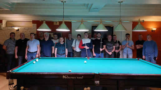 Собралось 19 участников. Провели жеребьевку и разделились на 2 группы по 10 и 9 человек. Лучшие 2 игрока из каждой группы вышли по полуфинал турнира, где играли до 2-х побед. Одна из 2-х лучших биллий нашего турнира попала на камеру: Первый полуфинал был с контровой партией: Второй полуфинал был более убедительным: Победители полуфиналов вышли в финал, проигравшие - бились за III место. Битва за III место: Финал с контрой: Победителем первого нашего турнира после летнего перерыва стал Александр С, II место у Александра В, битву за III место выиграл Андрей Кр...