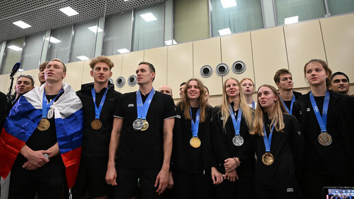 Российские пловцы-триумфаторы вернулись в Москву с целой россыпью наград, которые они завоевали на чемпионате мира по водным видам спорта в Сингапуре. На соревнованиях такого уровня наша сборная участвовала впервые после длительного перерыва и показала блестящий результат. О том, как ковалась победа, атлеты рассказали корреспонденту РЕН ТВ Ивану Литомину – он встречал победителей в аэропорту. Плакаты, фотографии, флаги и главное – российский гимн: в Домодедове то, чего так не хватало нашим пловцам на чемпионате мира по водным видам спорта в Сингапуре...