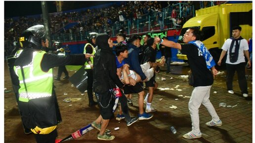 Матч середняков индонезийского чемпионата закончился самой массовой трагедией за последние 58 лет. 354 человека пострадали после столкновения с местной полицией, 174 из них — погибли. Теперь местные власти будут пересматривать требования к безопасности, а Министр спорта боится, что страна останется без чемпионата мира до 20 лет. «КП Спорт» — о том, как произошла катастрофа на футбольном поле. Фанаты захотели разобраться с футболистами и полицией «Арема» — «Персебая» — противостояние двух середняков чемпионата Индонезии по футболу...