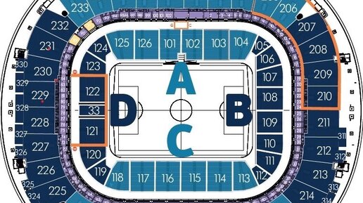 225-232 трибуна D, верхний ярус. Ранее - сектора активного боления,