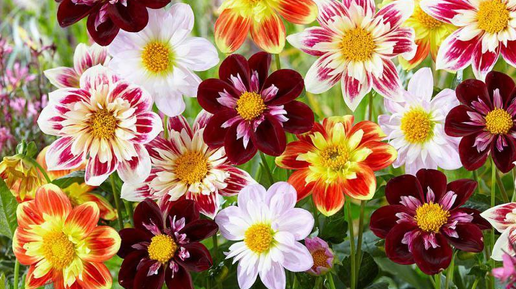Беру на себя смелость назвать этот вид георгинов новинкой, поскольку вижу такую красоту в магазинах семян впервые, плюс нет отзывов от очевидцев - тех, кто вырастил и показал свои фото. В связи с чем, призываю отнестись к этому виду без завышенных ожиданий. На картинках все красиво, а как оно по факту, еще мало кто разобрался. Но разобраться и увидеть живьем - интересно. Как я поняла, это разновидность "веселых ребят". Это фото с упаковки семян. При ближайшем рассмотрении живых георгинов может получиться так...