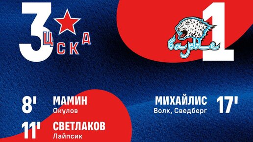 ЦСКА (Москва) – «Барыс» (Нур-Султан, Казахстан) – 3:1 (2:1, 1:0, 0:0)