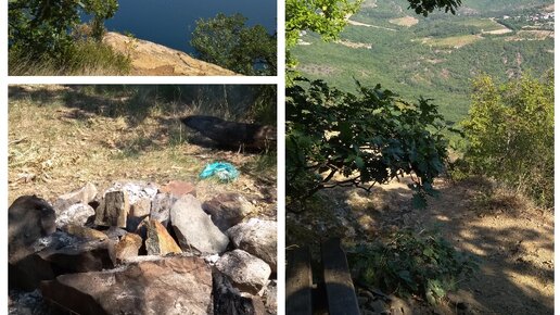 В общем, подъем был не особенно труден для семьи почти спортсменов. Немного переживала за детей, но, наверное, нужно больше всего переживать за меня:) Прошло менее часа, как мы добрались до вершины всего с одной небольшой остановкой: присели на заботливо установленную скамеечку. Забравшись на вершину, вернее, почти на вершину, поскольку до нее еще по лесу нужно протопать некоторое расстояние, мы перекусили яблоками и пирожками, запив всё это водой. Полторы из четырех бутылочек 0,5 л стали пустыми...