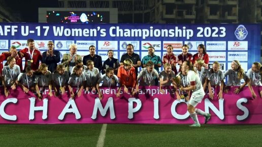 Женская юниорская сборная России U-16 триумфально завершила выступление на Чемпионате Федерации футбола Южной Азии среди девушек до 17 лет (SAFF Championship). Чемпионат проходил в рамках программы UEFA Assist в городе Дакка, столице Бангладеш. Женская юниорская сборная России U-16 поочередно обыграла Бангладеш (3:0), Бутан (9:1), Непал (3:0), Индию (2:0) и завоевала трофей...