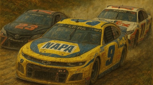 В жёсткой зарубе на финише в Канзасе Чэйз Эллиот выиграл у Дэнни Хэмлина и Бабба Уолласа и получил путевку в полуфинал плей-офф Наскар.