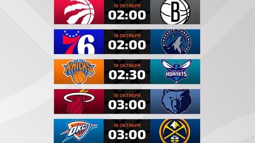 💥 Первый матч Егора Дёмина в основной команде «Бруклина» и другие игры большой предсезонной ночи! 02:00 | «Торонто» х «Бруклин» 🎙 Андрей Панкрашев 02:00 | «Филадельфия» — «Миннесота» 🎙 Варвара Водзинская 02:30 | «Нью-Йорк» — «Шарлотт» 🎙 Дмитрий Хамидулин 03:00 | «Майами» — «Мемфис» 🎙 Артём Тихонов 03:00...