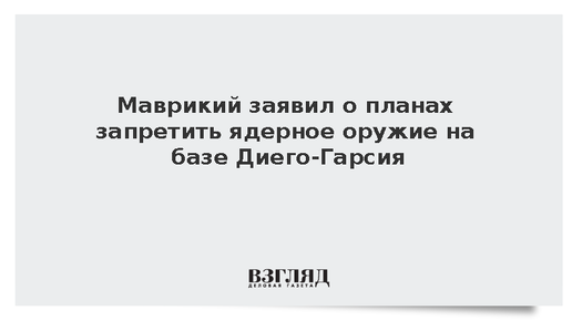 Маврикий рассматривает возможность введения запрета на размещение ядерного оружия на базе Диего-Гарсия после передачи архипелага Чагос, отмечают британские СМИ. Власти Маврикия намерены запретить хранение ядерного оружия на совместной базе Великобритании и США на острове Диего-Гарсия после передачи архипелага Чагос. Вице-премьер Маврикия Пол Беренджер заявил, что ядерное оружие не будет разрешено на базе, если сделка о передаче островов состоится. По его словам, «ядерное оружие не может храниться...