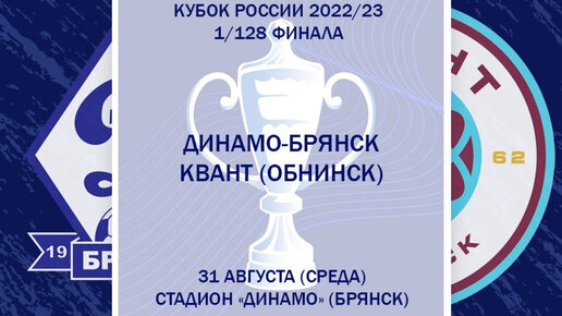 По итогам жеребьевки начальных стадий Кубка России по футболу сезона 2022-2023 годов стал известен соперник ФК «Динамо-Брянск» по 1/128 финала Кубка России по футболу. В стартовом матче розыгрыша сине-белые сыграют с обнинским «Квантом», соперником сине-белых по групповому этапу первенства второй лиги. Команда из Калужской области сейчас расположилась на восьмой строчке в турнирной таблице, и с ней динамовцы сыграют на своем поле в рамках регулярного первенства уже 14 августа...