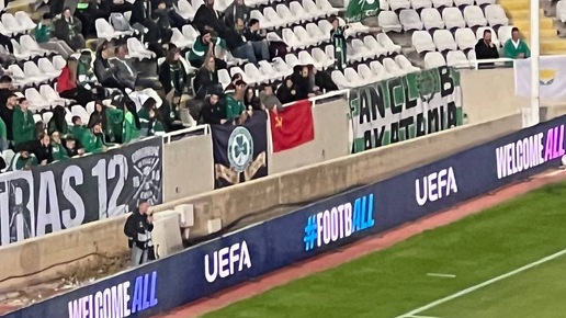 Фанаты «Омонии» перед игрой Лиги конференций с «Динамо» Киев вывесили флаги России и СССР