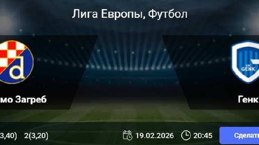 Бельгийский «Генк» выдал мощный выездной матч против «Динамо» Загреб и сделал серьёзную заявку на выход в 1/8 финала Лиги Европы. Команда Ники Хайена уверенно реализовала свои моменты и победила со счётом 3:1. С первых минут гости выглядели организованно и агрессивно в атаке. Уже на 15-й минуте после подачи углового Брайан Хейнен выиграл верховую борьбу и отправил мяч в правый угол — 0:1. Через несколько минут «Генк» удвоил преимущество. На 21-й минуте Закария Эль Уахди оказался самым расторопным в штрафной и точно пробил по центру ворот — 0:2...