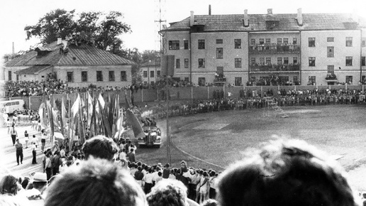 Торжественная встреча космонавтов Леонова и Беляева на стадионе «Динамо», 1965 год.
