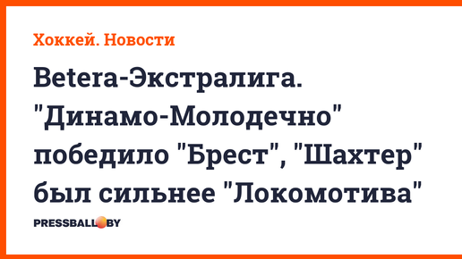 "Динамо-Молодечно" одолело "Брест" (3:1), солигорский "Шахтер" был сильнее оршанского "Локомотива" (2:1) в матчах Betera-Экстралиги. Динамо-Молодечно — Брест — 3:1 (1:0, 1:0, 1:1) Шайбы: 1:0 — Гринь (Самсонов, Копытин, 16.41). 2:0 — Копытин (Самсонов, Косинский, 31.12). 2:1 — Зайчик (Мартынюк, Селивоник, 58...