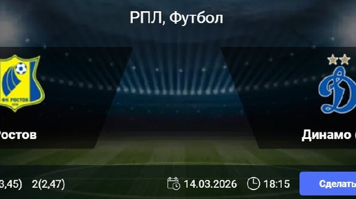 Ростов - Динамо Москва: РПЛ 21-й тур чемпионата России (14/03/26/18:15