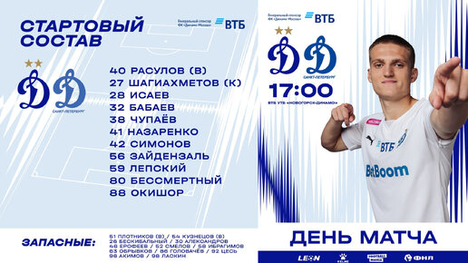 Стартовый состав Динамо-2 на матч с Динамо СПб