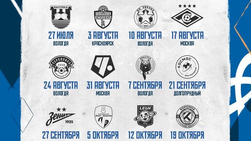 Представляем календарь матчей «Динамо» Вологда на второй круг первенства Второй Лиги Б 🗓 Возобновление сезона намечено на 27 июля. Турнир проходит в два круга и завершится 2 ноября 😉 Билеты на домашний матч с «Балтикой-2» здесь: clck...