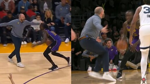 Тэйлор Дженкинс выскочил на площадку после того, как Леброн Джеймс и Джарен Джексон сошлись в борьбе