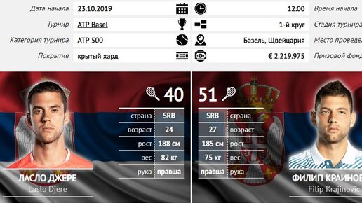 Прогноз на матч Ласло Джере - Филип Краинович. П2. ATP Базель. 1-й круг. Начало матча: 23.10.2019 в 12:00