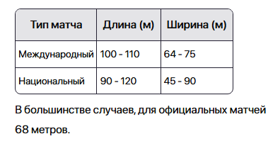 Длина футбольного поля варьируется в зависимости от уровня соревнований, но в общем случае следующие параметры применяются: