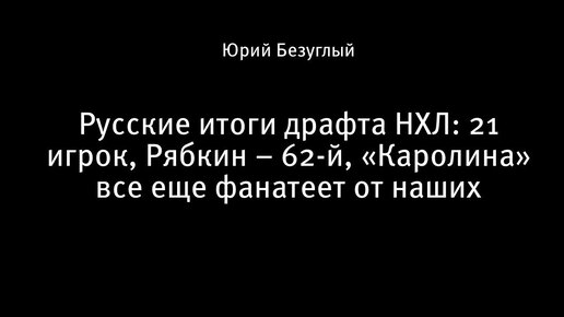 Русские итоги драфта НХЛ: 21 игрок, Рябкин – 62-й, «Каролина» все еще фанатеет от наших