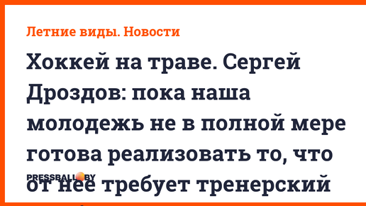 Хоккей на траве. Сергей Дроздов: пока наша молодежь не в полной мере готова реализовать то, что от нее требует тренерский штаб