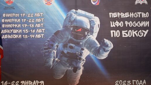 Враги врут, что экономика и спорт в России порваны в клочья. На самом деле… 16-21 января 2023г. в г.о. Королев Московской области прошли очередные плановые соревнования по боксу среди юношей и девушек на первенство Центрального федерального округа. День финальных боев был открыт торжественными звуками Гимна Российской федерации. На большом экране был показан видеоролик о Специальной военной операции, в которой достойно участвуют боксеры и другие спортсмены России. На фото: торжественное построение...