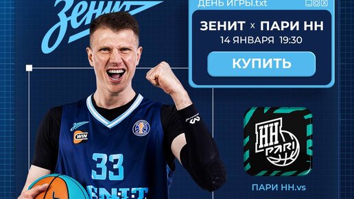 🏀 🏀ЗЕНИТ х Пари НН 🏀 14 января в 19:30 КСК «АРЕНА» 🏟️ Врываемся в этот год уже 14 января в 19.30 в КСК "Арена" - состоится первый домашний матч в новом году! В качестве подарков от клуба тепло и море эмоции, как всегда. Может подарим им полные трибуны поддержки в ответ? Промокод на Зенит: Pitercode...