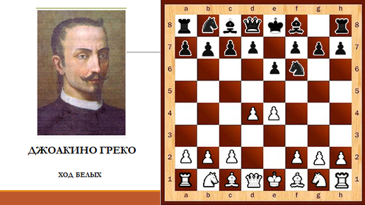 Партия очень захватывающая, как и многие игры (или фантазии) Джоакино Греко, итальянского великого калабрийца, шахматиста XVII века, оставившего после себя множество интересных разработок