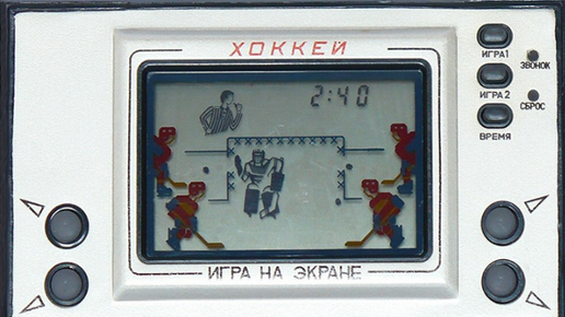 Игра, из серии советских портативных электронных игр с жидкокристаллическим экраном, производимых под торговой маркой «Электроника». Из серии предыдущих итг Электроника, больше похожа на Электроника ИМ-02 Ну погоди!, так как, также имеет 4 кнопки управления. Так же имеется выбор Игра 1 и Игра 2, суть игры заключается в следующем, с помощью кнопки управления поставить вратаря на место где шайба ближе всего приближается к воротам...