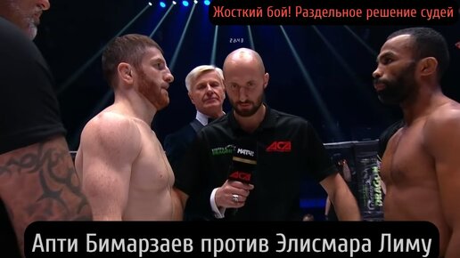 Апти Бимарзаев победил Элисмара Лиму раздельным решением судей на АСА 133 В первом раунде. Элисмар гонялся за своим соперником, в пытках зажать Апти к сетке, однако Бимарзаев очень хорошо двигался и в свою очередь пытался действовать на контратаках, в этом раунде активность проявлял больше Лима, которому можно отдать этот раунд с небольшим перевесом. Во втором раунде картинка боя изменилась. С первых секунд Апти провёл тейкдаун, а на настиле он владел контролем, спешно защищаясь от попыток Элисмара накинуть треугольник...