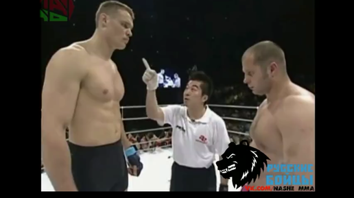 Вот один из нескольких боёв русского чемпиона Фёдора Емельяненко, где он дерётся с бойцами которые превосходят его в росте и массе, но несмотря на это он их побеждает. Соперники пожав руки расходятся по углам. Первый раунд начинается атакой Фёдора браском. И сразу же добивание. Начинается 2 раунд. Бойцы готовы 2 раунд как и следующие не отличается от 1...