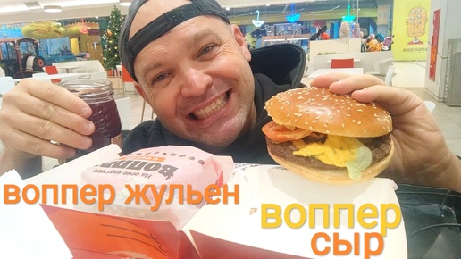 МУКБАНГ воппер с сыром и воппер жульен/ОБЖОР Бургер Кинг/перекус/еда на камеру