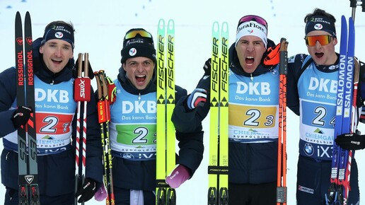 Французские биатлонисты выиграли эстафету на пятом этапе Кубка мира в немецком Рупольдинге. Фабьен Клод, Оскар Ломбардо, Кентен Фийон-Майе и Эрик Перро преодолели дистанцию 4 по 7,5 км за 1 час 8 минут 58,1 секунды, использовав на восьми огневых рубежах 4 дополнительных патрона и пробежав один штрафной круг. Второй стала сборная Норвегии, которую представляли Йоханнес Дале-Шевдал, Стурла Легрейд, Мартин Ульдал и Ветле Кристиансен (отставание - 6,2 секунды; 0 штрафных кругов + 7 дополнительных патрона),...