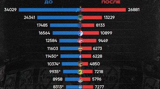 Сезон-2022/23 в РПЛ запомнился введением Fan ID: до зимней паузы система работала на стадионах «Крыльев Советов», «Сочи», «Пари НН», «Урала» и «Ростова», а после – была внедрена повсеместно. Посещаемость ожидаемо рухнула почти на 50%: если в последний сезон без ковидных ограничений в среднем на матчи РПЛ ходило 16817 зрителей, то в сезон с Fan ID – 9426. Причем количество зрителей на матчах уменьшилось даже относительно сезона-2021/22, когда в РПЛ действовали ковидные ограничения: «Зенит» стал собирать на семь тысяч меньше, «Краснодар» – на десять, «Динамо» – на 11...