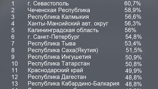 Добрый день, уважаемые читатели. Сегодняшний обзор будет посвящен удовлетворенность заработной платой в разных регионах России. Не секрет, что уровень оплаты в разных регионах России отличается, однако согласно данным иногда несмотря на меньший уровень оплаты в регионе, уровень удовлетворенности в нем может быть намного выше, чем среднее значение по стране. Данные выглядят следующим образом: На картинке мы отразили 20 первых регионов. Мы понимаем, что вам интересно, как распределились оставшиеся места...