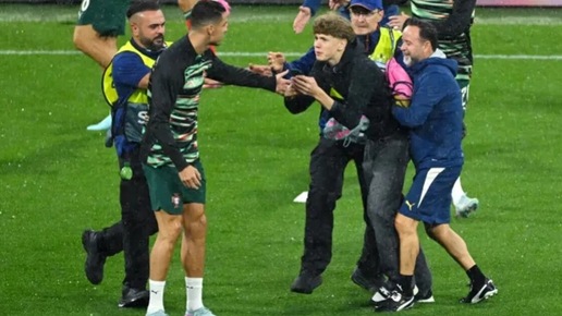 Фанат выбежал на поле и успел сделать фото с Роналду