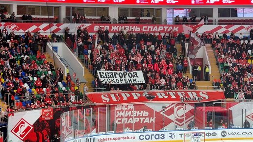 Болельщики «Спартака» во время матча регулярного чемпионата Континентальной хоккейной лиги против СКА почтили память погибших при обстреле Белгорода. Матч прошел в Москве на арене «Мегаспорт». Спартаковцы проиграли со счетом 2:5, а по ходу матча уступали даже 0:5. Форвард красно-белых Илья Ковальчук забил гол и набрал свое 400-е очко в КХЛ. Он стал вторым после Радулова игроком, набравшим по 400 очков в КХЛ и НХЛ...