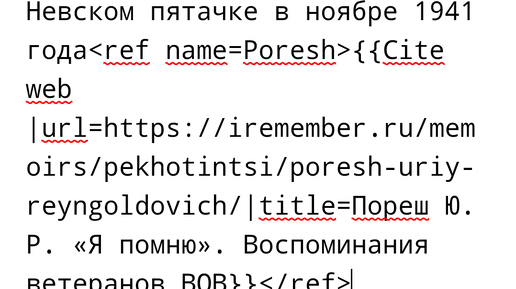 Приветствую. В статье о боях на "Невском пятачке" была неработающая ссылка. Решил внести вклад, так сказать. Зарегистрирован там я не был, а на мой ник дзена кто-то уже зарегался...пришлось импровизировать. И в итоге только с нескольких попыток исправить старую ссылку на новую сделал правильно Цитата сама по себе жуткая, как и многие воспоминания о войне на портале "Я Помню". Сперва, когда увидел неработающую ссылку, то подумал, что с портала удаляют неугодные слишком суровые описания военной поры,...
