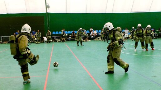 Крымские пожарные в противогазах и касках сыграли в футбол