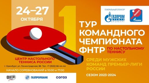 В Оренбургской области пройдет первый тур командного чемпионата Федерации настольного тенниса России среди мужских команд премьер-лиги. Оренбург с 24 по 27 октября примет команды второй группы — «Спарта энд Ко» (Видное, Московская область), «Кубань-Континенталь» (Краснодар), «Гидромет» (Санкт-Петербург), «МГФСО-Москва» (Москва), новичок премьер-лиги «Оргил» (Улан-Удэ). Оренбуржье представят команды «Факел – Газпром» и «Факел – Газпром-2»...