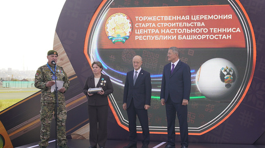 Глава Башкирии Радий Хабиров и президент Федерации настольного тенниса России, заместитель председателя Госдумы Александр Бабаков приняли участие в церемонии старта строительства Центра настольного тенниса в Уфе. Новый объект площадью 2000 кв. м возведут в микрорайоне Затон рядом с республиканским Центром спортивной подготовки имени Римы Баталовой. В здании будет размещаться спортзал со зрительскими местами на 150 человек, раздевалки, тренажерный и тренировочный залы, другие помещения. «Совсем скоро в Уфе появится новый спортивный объект...