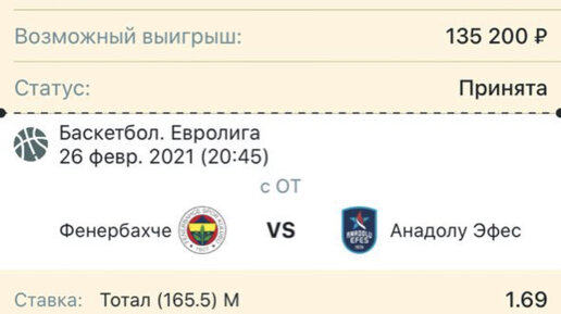 Мой прогноз на баскетбол 🏀 Фенербахче - Анадолу Эфес 26.02.21
