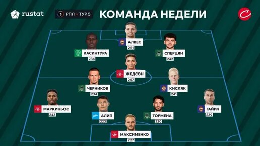 Самый дорогой новичок в истории «Спартака», забил два мяча (один отменили) и набрал рекордный индекс среди всех футболистов РПЛ в этом сезоне. «Советский спорт» и «РУСТАТ» продолжают знакомить с лучшими игроками чемпионата России. Сейчас на очереди игроки, лучше других проявившие себя по итогам 5-го тура. Наибольшее представительство (по три футболиста) получили Краснодар, «Спартак» и ЦСКА. В «дерби двух столиц» вратарь красно-белых справился и с пенальти, и с первым добиванием – дальше уже не помогли полевые игроки...