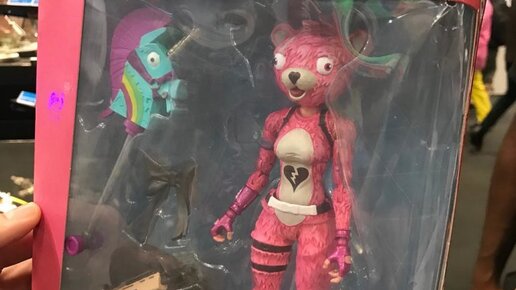 Компания McFarlane Toys, которая занимается созданием фигурок по поп-культурам, объявила о выпуске первых фигурок по Королевской битве фортнайт. На Comic Con 2018 в Нью-Йорке, Todd McFarlane (CEO MFT) продемонстрировал упаковку с Cuddle Team Leader. Вместе со сгибающейся игрушкой «Капитана команды обнимашек» в наборе присутствует Rainbow Smash и SCAR...