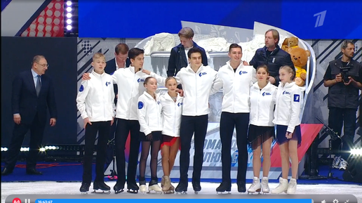 Кратко делюсь ходом соревнований и впечатлениями от командного турнира. Выступали 3 команды: Плющенко, Мишина и Тутберидзе. Но спортсмены в их командах были не только из их тренерского штаба. Состав команды Плющенко: Состав команды Мишина: Состав команды Тутберидзе (и зачем её так отфотошопили?): Раунд 1 Мишина и Галлямов выполнили чисто тройную подкрутку. Бойкова и Козловский пошли на четверную, но сделали грязнее. Тарасова и Морозов сделали тоже четверную, но чище. В прыжках Мишина и Галлямов зашли на тройной лутц, но Саша приземлил его с ошибкой...