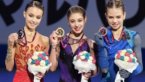 Вот так будет выглядеть пьедестал ЧМ по фигурному катанию среди женщин. Получите, распишитесь