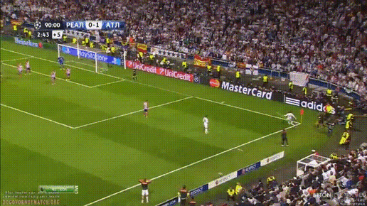 «Финал Лиги чемпионов 2014 года. Мадридское дерби – «Реал» против «Атлетико». Великое спасение «Реала» за счет гола Рамоса головой на 90-й минуте встречи. Вонзил мяч на угловом после подачи Лука Модрича. В овертаймах «Реал» добивается уверенной победы. Настоящий триумф клуба и капитана!» NostalGoal...