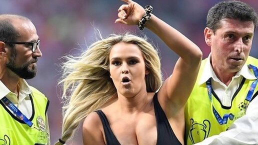 Девушка выбежала на поле в финале футбольной Лиги Чемпионов и прославилась