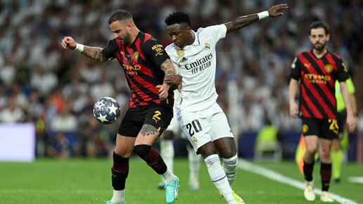 Матч начинался обескураживающе для "Реала", который подвергся мощному натиску со стороны "Манчестер Сити". Однако мадридцы выстояли и смогли взять передышку уже в первом тайме. А их дебютная завершенная ударом атака оказалась результативной благодаря точному удару Винисиуса. Вернуть себе тотальный контроль над мячом и положением "Сити" долго не мог. Во втором тайме шла в основном равная борьба, местами "Реал" даже смотрелся предпочтительнее. Как раз на таком отрезке в середине второго тайма "Манчестер" сумел сравнять счет дальним ударом Де Брейне...